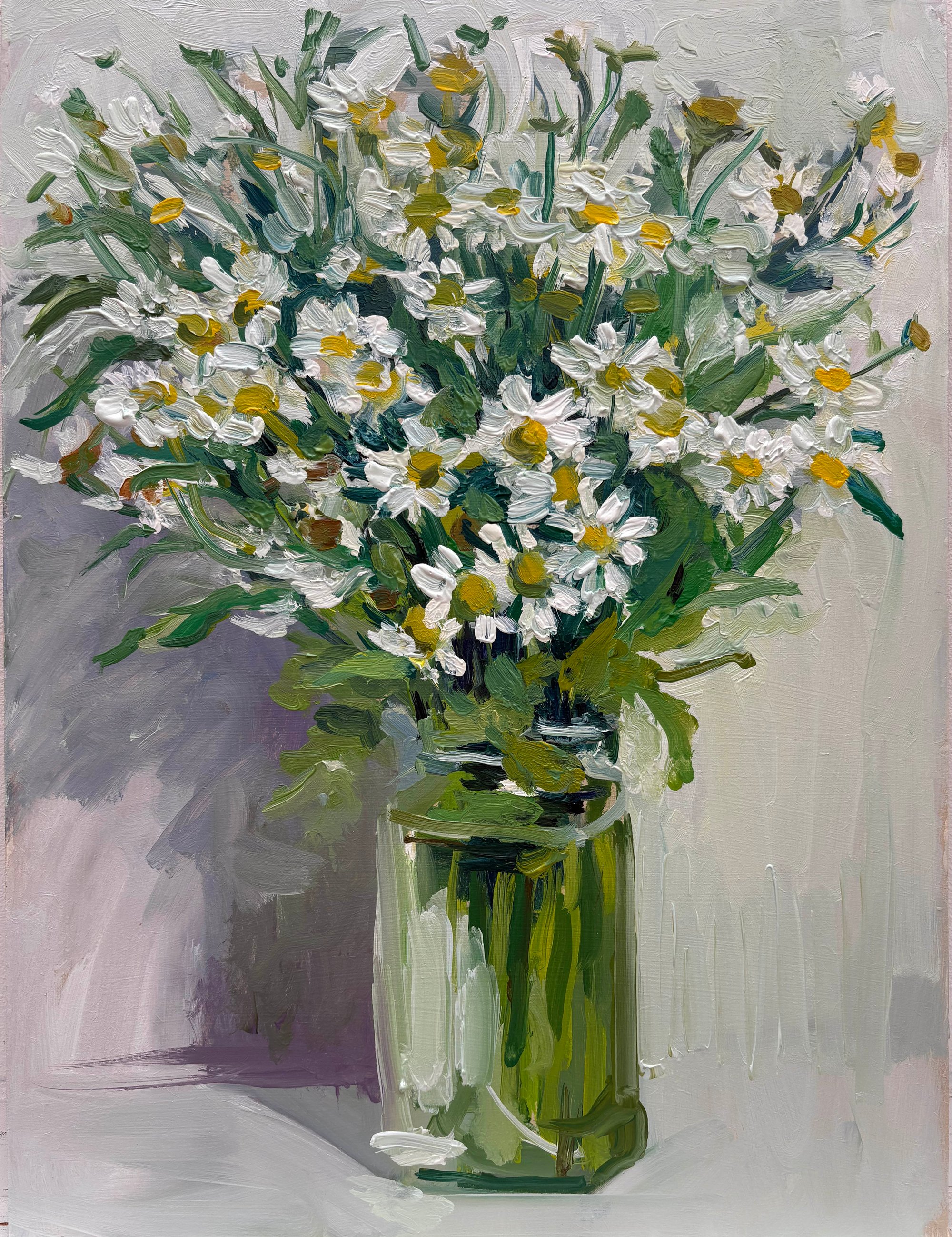Daisies in Coffee Jar. Oil on Panel. 40cm x 30cm