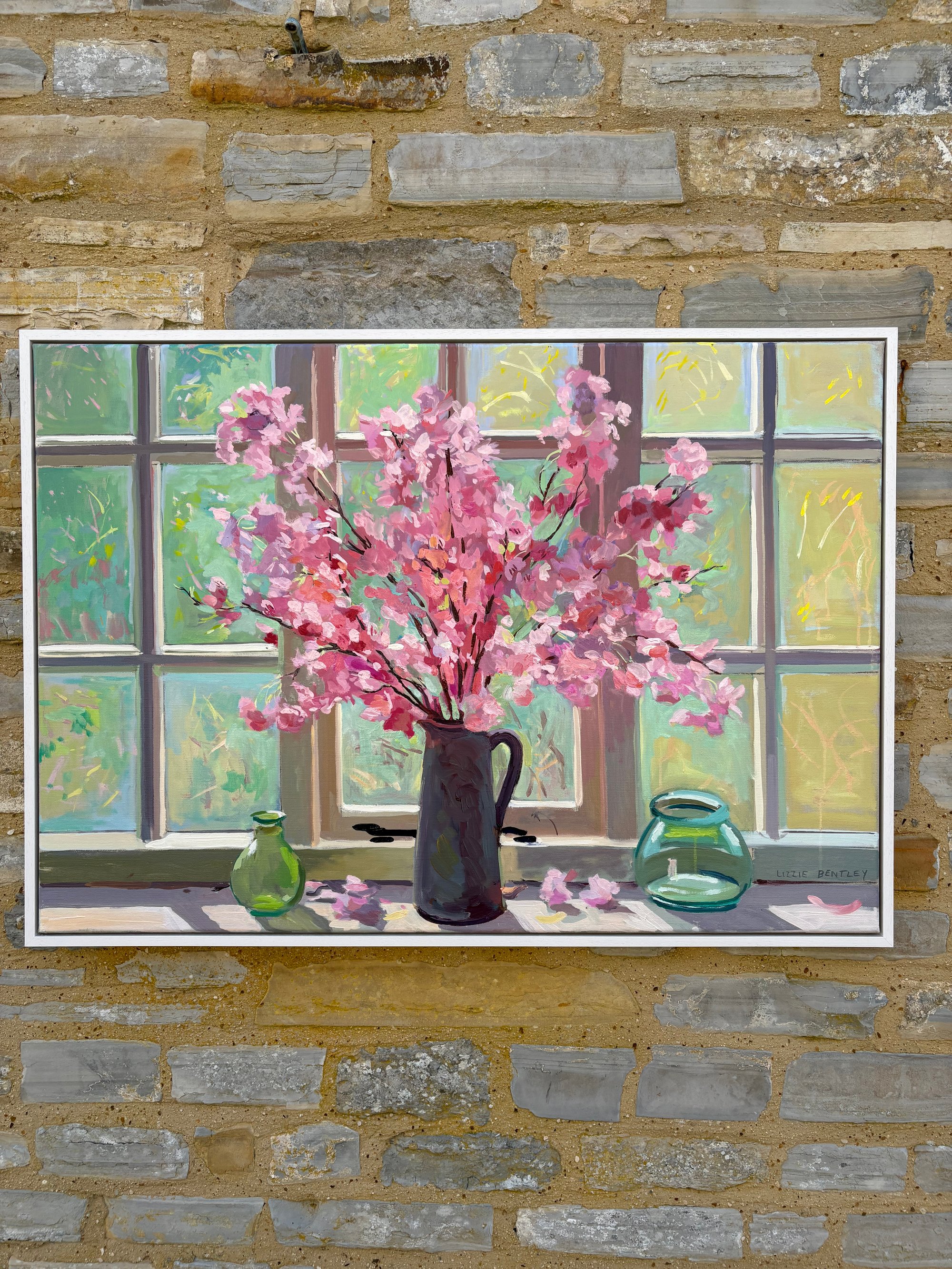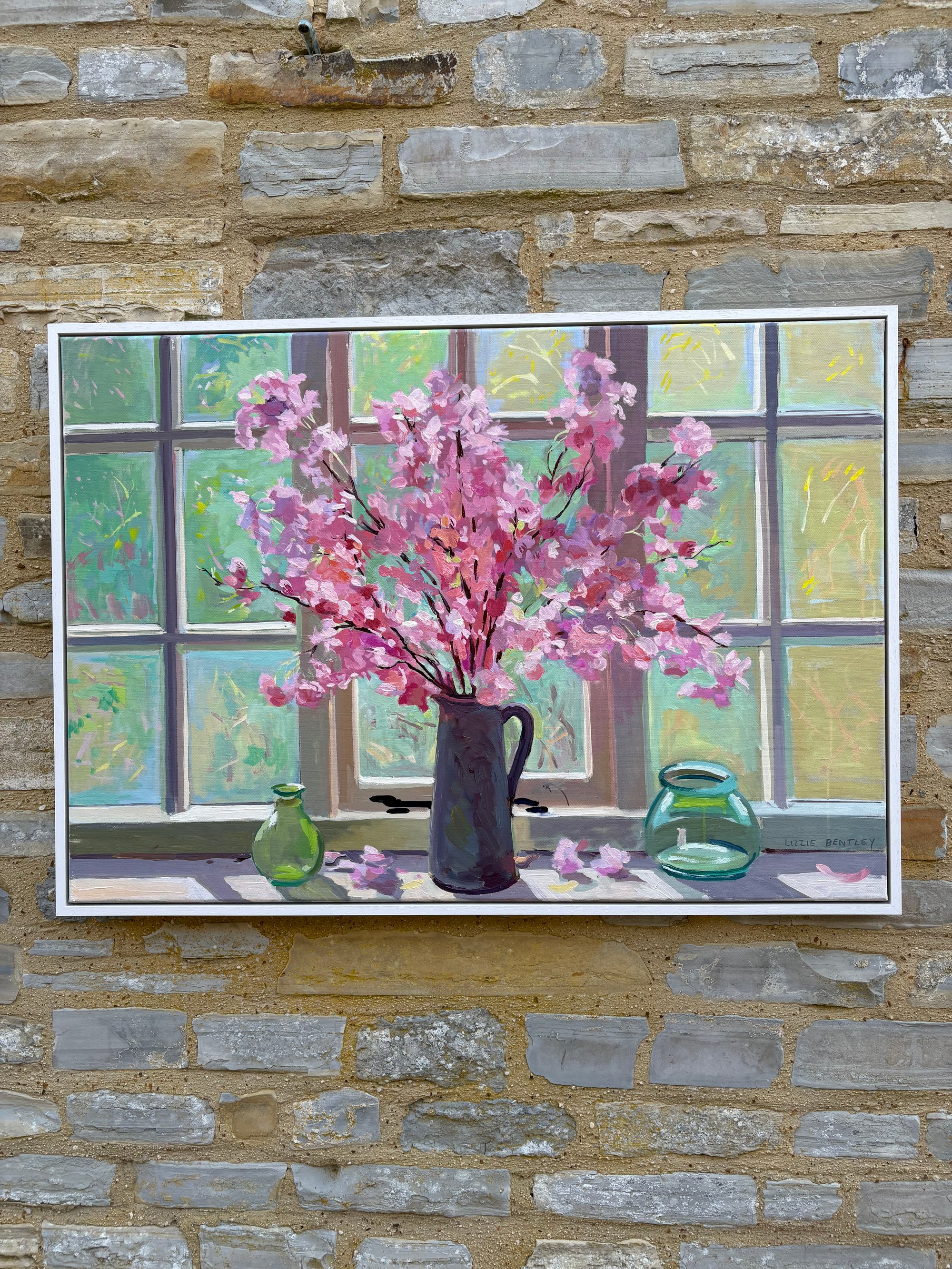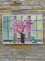 Pink cherry blossom against my studio window 100cm x 70cm