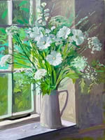 Studio window with Honesty, Daucus, scabiosa, Nigella, Hellichrysum. Oil on Canvas 86cm x 106cm