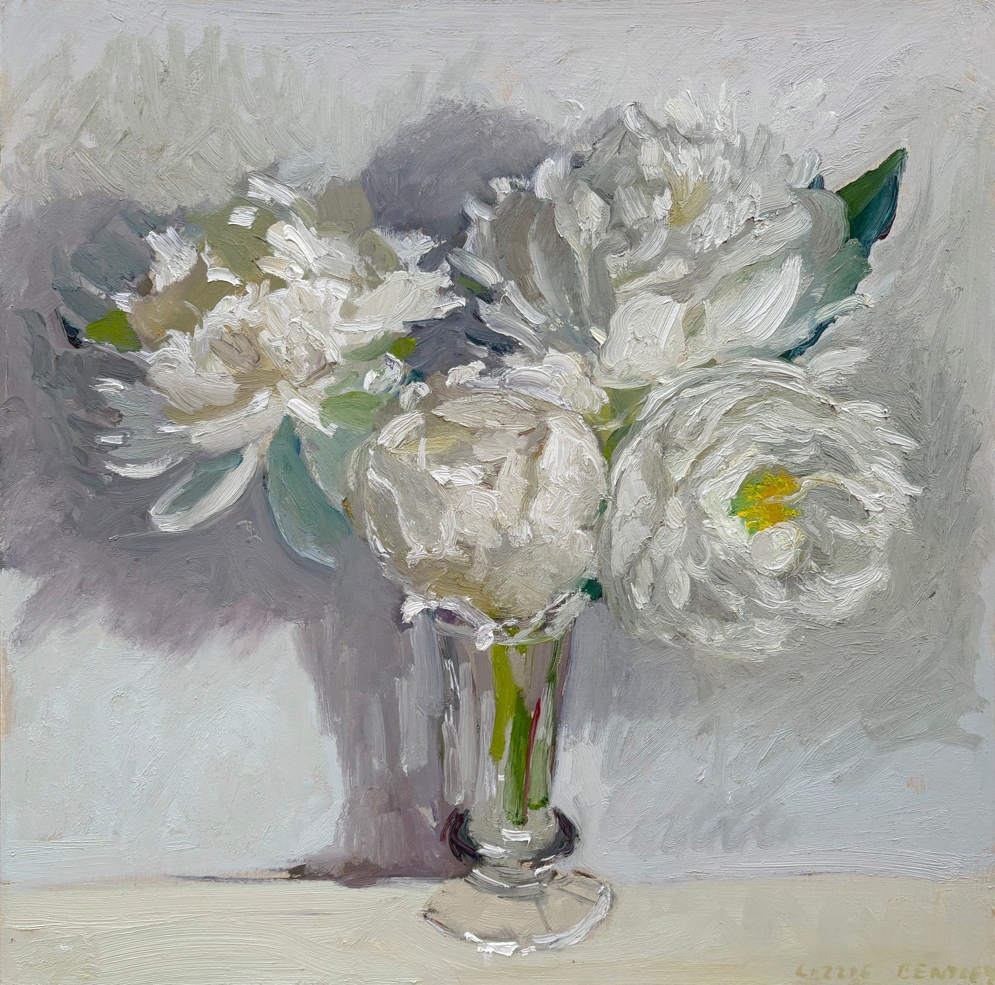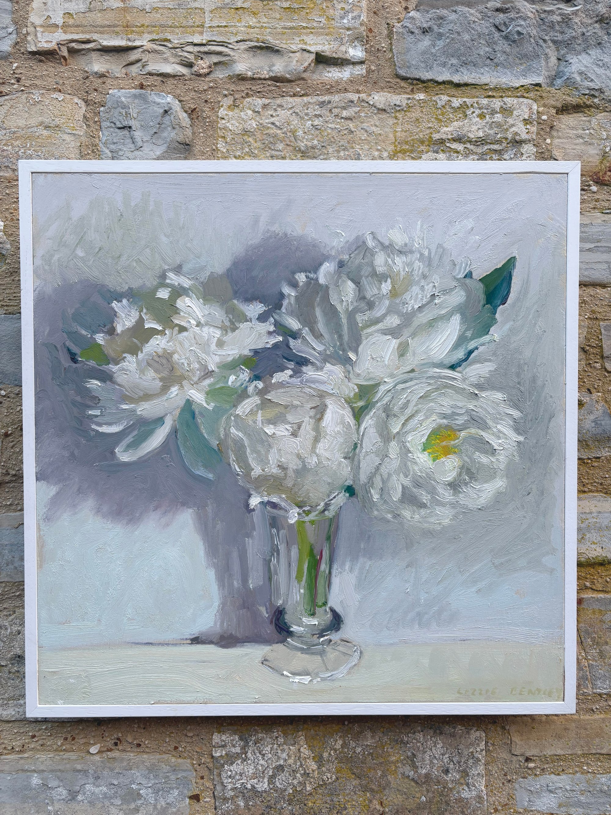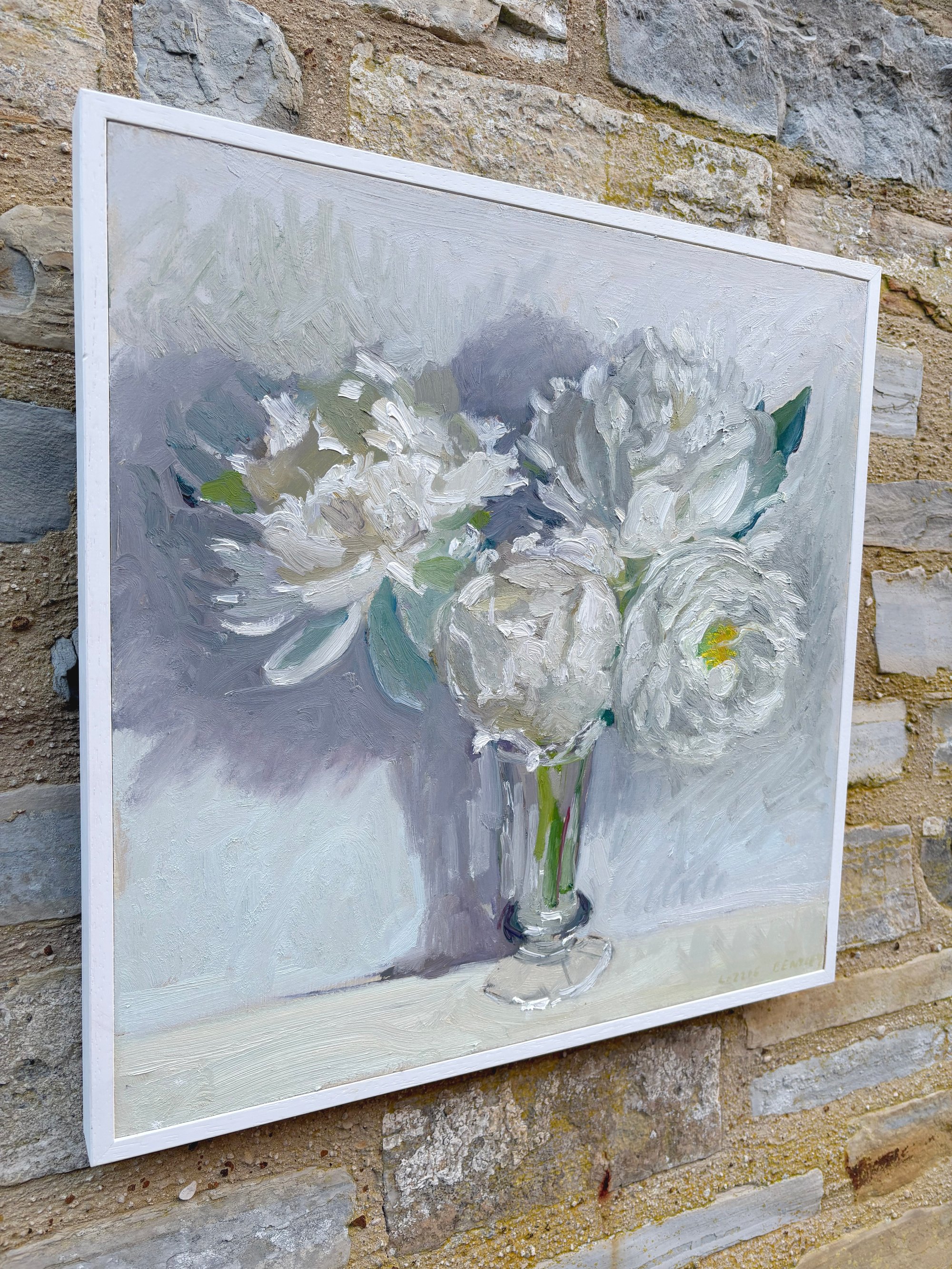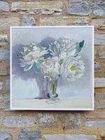 Original oil painting of 4 white peonies 45cm x 45cm (Including frame)