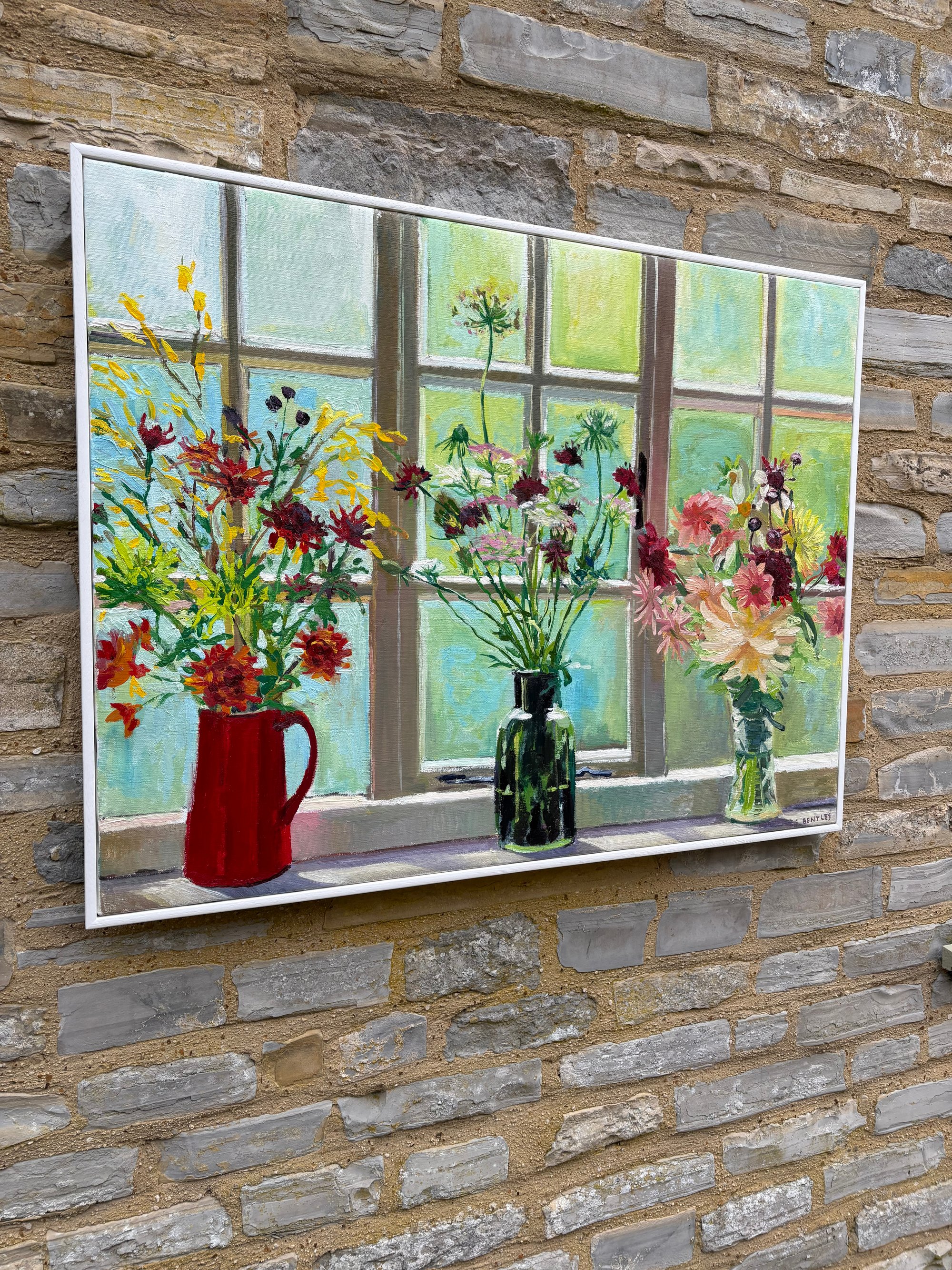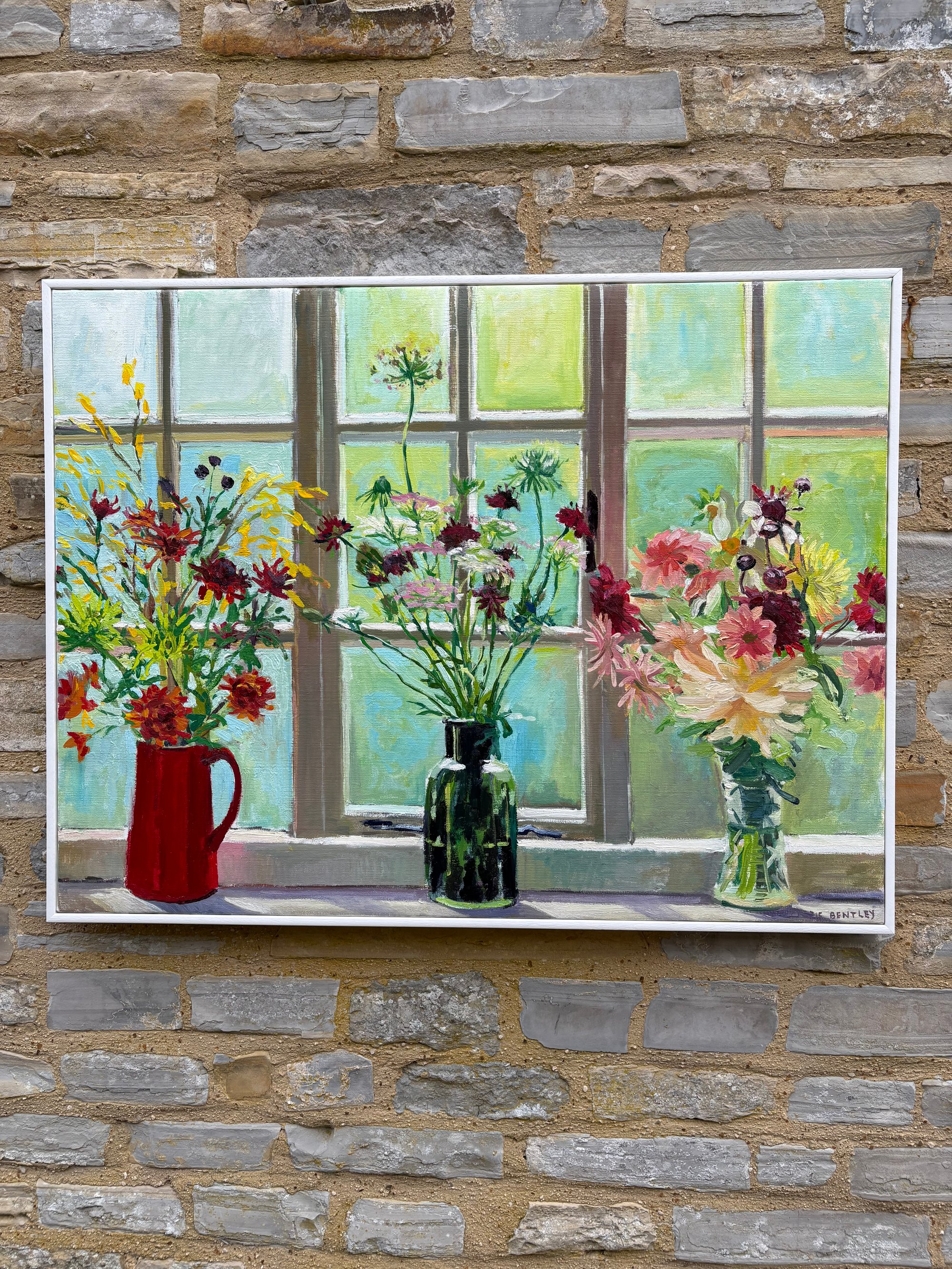 Studio Window with October Flowers. Oil on linen canvas. 100cm x 76cm